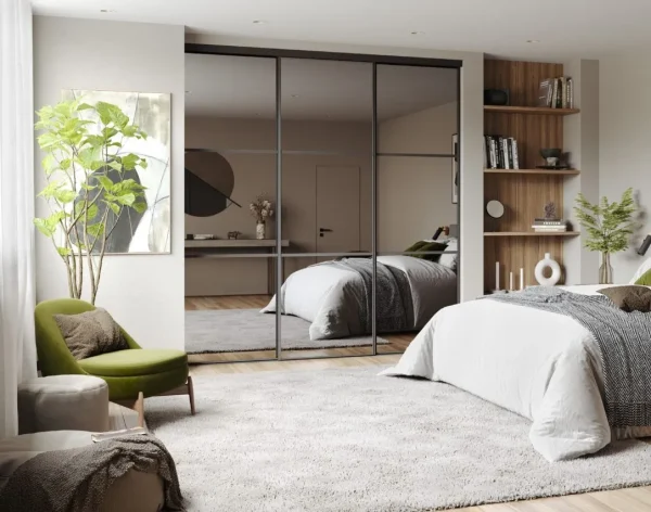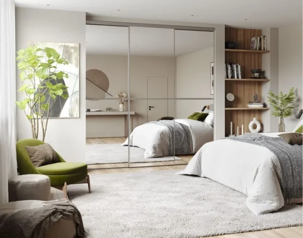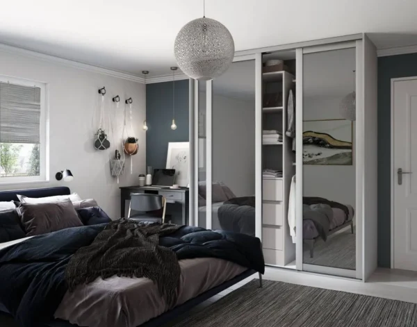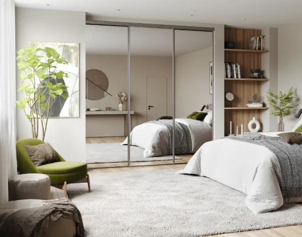 Introduce a new sense of life to your home with our fantastic range of mirrored sliding wardrobe doors. Choosing a wardrobe with mirrors doesn’t only provide a sleek storage solution; the large, full-length mirrors can create the illusion of a larger living space through the reflection of natural light – they’re the perfect option for a smaller room.